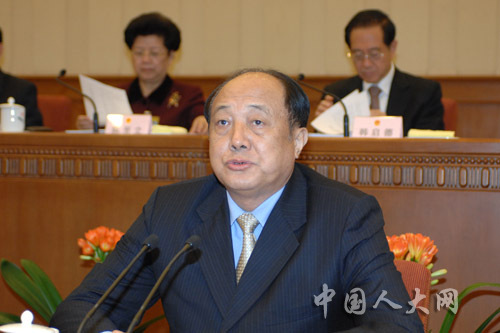 在全國人大任法律委員會副主任時作”關于國防動員法草案審議結果的報告“
