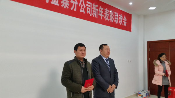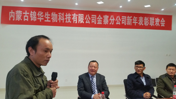 2015年的最后一天,金寨生產基地的全體員工40余人在生產基地剛剛建成的4樓會議室里歡聚一堂,舉行新年表彰聯(lián)誼會,總結2015年的工作,迎接新年的到來,錦華公司董事長溫晴和總經理蘇振泉參加了活動。