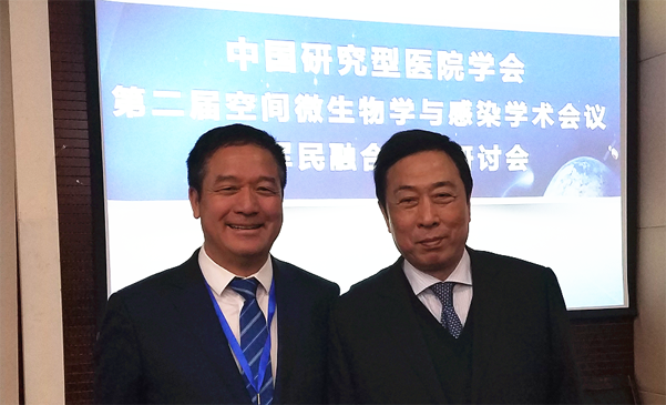 2017年10月28日,中國研究型醫(yī)院學會第二屆空間微生物和感染專業(yè)委員會學術會議暨軍民聯(lián)合發(fā)展研討會在北京召開,內蒙古錦華生物科技有限公司總經理蘇振泉以專業(yè)委員會委員的身份參加了會議,董事長溫晴應邀列席參加會議。