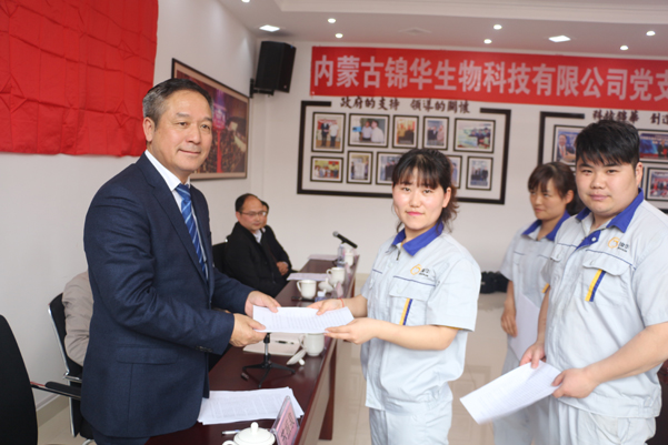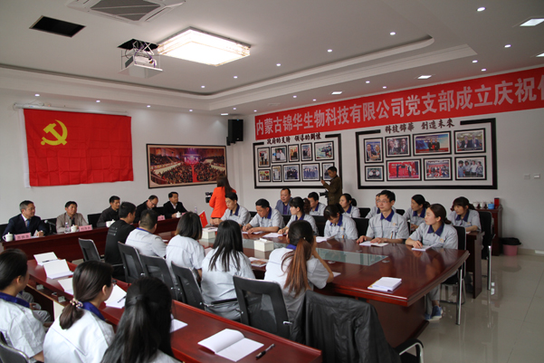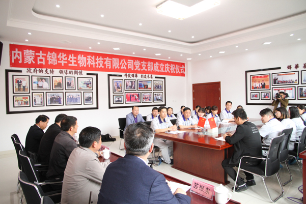 2018年4月15日,在金寨現(xiàn)代產(chǎn)業(yè)園區(qū)舉行了內(nèi)蒙古錦華生物科技有限公司金寨分公司建立黨支部慶祝儀式。會(huì)議由錦華公司金寨生產(chǎn)基地黨支部書記、錦華公司總經(jīng)理蘇振泉主持,金寨縣政協(xié)副主席、工商聯(lián)主席易成林,金寨縣宣傳部副部長(zhǎng)張仁袞,現(xiàn)代產(chǎn)業(yè)園招商局局長(zhǎng)、非公黨委副書記付澤民,非公黨委委員、黨建指導(dǎo)員廖榮成參加慶祝儀式。