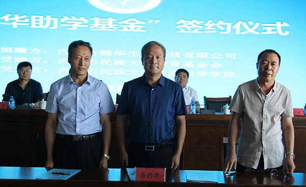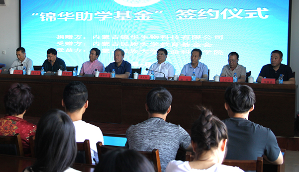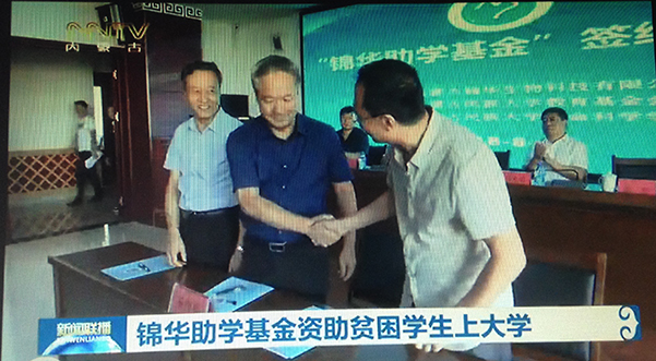 “錦華助學(xué)基金”向內(nèi)蒙古民族大學(xué)捐助的54萬(wàn)元善款。是從2018年到2021年四年期間將資助貧困生120人次,每生每年4500元。