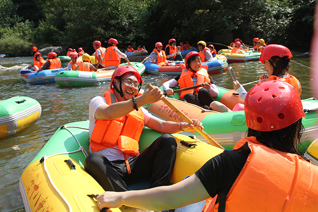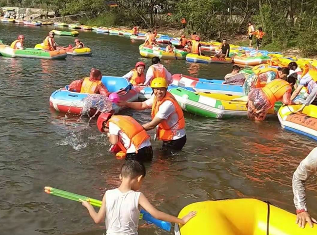 第一項(xiàng)行程:吳家店漂流。2019年8月24日,終于迎來了大家最喜歡的漂流,大家笑著、鬧著,都帶上了偷偷準(zhǔn)備的“秘密武器”——水舀子、水槍,隨時準(zhǔn)備著給大家別樣的“驚喜”,你給我一瓢,我還你一槍,那場面真是比當(dāng)天35℃的天氣還要熱鬧。水流急了,彎道窄了,有人磕到屁股了,也是一段茶余飯后的笑談。