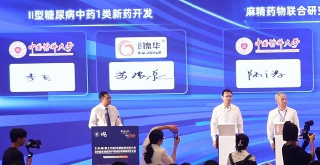 7月21日,在2024年第十六屆中國醫(yī)藥戰(zhàn)略大會上,隆重舉行了錦華集團(tuán)與中國藥科大學(xué)合作研發(fā)“Ⅱ糖尿病中藥1類新藥”簽約儀式。錦華集團(tuán)安徽斯普瑞生物科技有限公司蘇振泉董事長參加了簽約儀式。此次大會在南京舉行,由中國藥科大學(xué)主辦。
